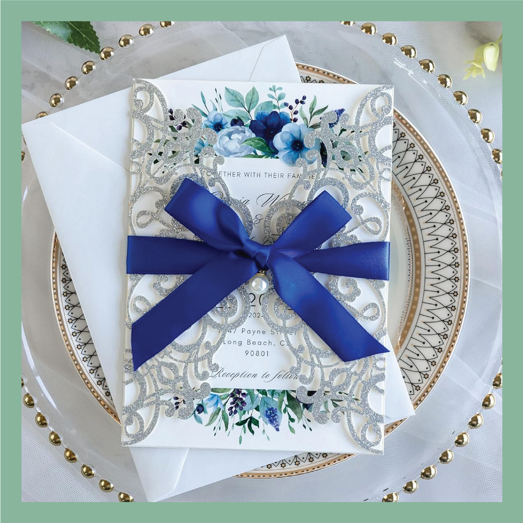 (75 Qty) | Silver Glitter Laser Cut Invitations CLEARANCE Bundle